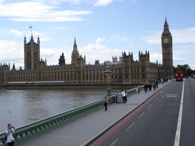 | À esquerda, o Parlemento; ao fundo, o Big Ben; à direita, o London Eye. |